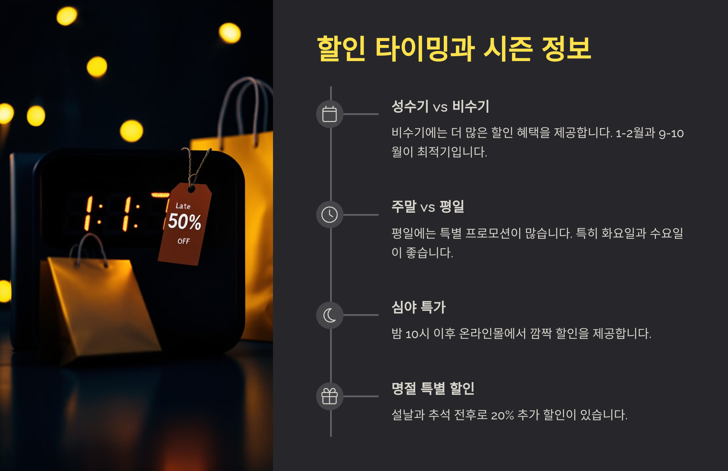 🕒 할인 타이밍과 시즌 정보