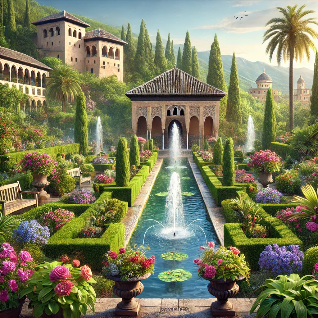 헤네랄리페는 알함브라의 여름 별궁으로 사용되었던 곳으로, 평화롭고 고요한 분위기를 자랑합니다. 정원에는 아름다운 꽃과 식물이 조화를 이루며, 분수와 연못이 어우러져 경이로운 풍경을 선사합니다. 여름철에는 이슬람 건축의 정교함과 자연의 조화를 감상하며 더위를 피하기에 이상적인 장소입니다.
