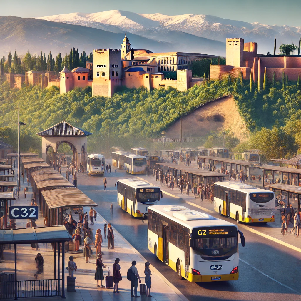 그라나다 시내에서 알함브라 궁전까지는 도보로 약 15~20분이 소요되며, C30 또는 C32번 버스를 이용하면 더욱 편리하게 접근할 수 있습니다.