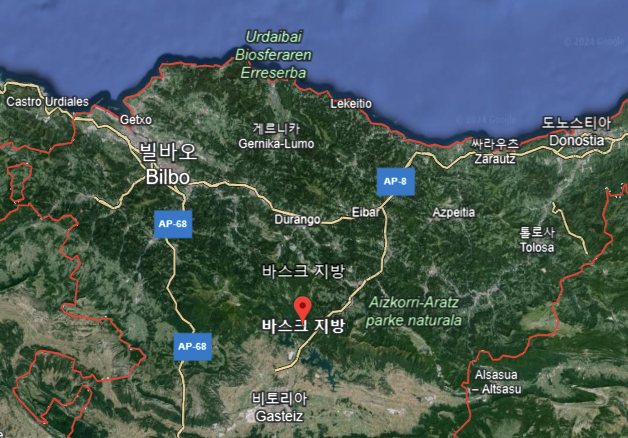 바스크 지역은 스페인 북동쪽에서 북대서양과 마주하고 있고 프랑스와 국경을 접하고 있는 위치에 있으며 독특한 언어와 문화를 가진 곳으로, 산 세바스티안과 빌바오 같은 도시가 있습니다. 피니셔스라 불리는 타파스와 같은 독특한 요리를 맛볼 수 있습니다.