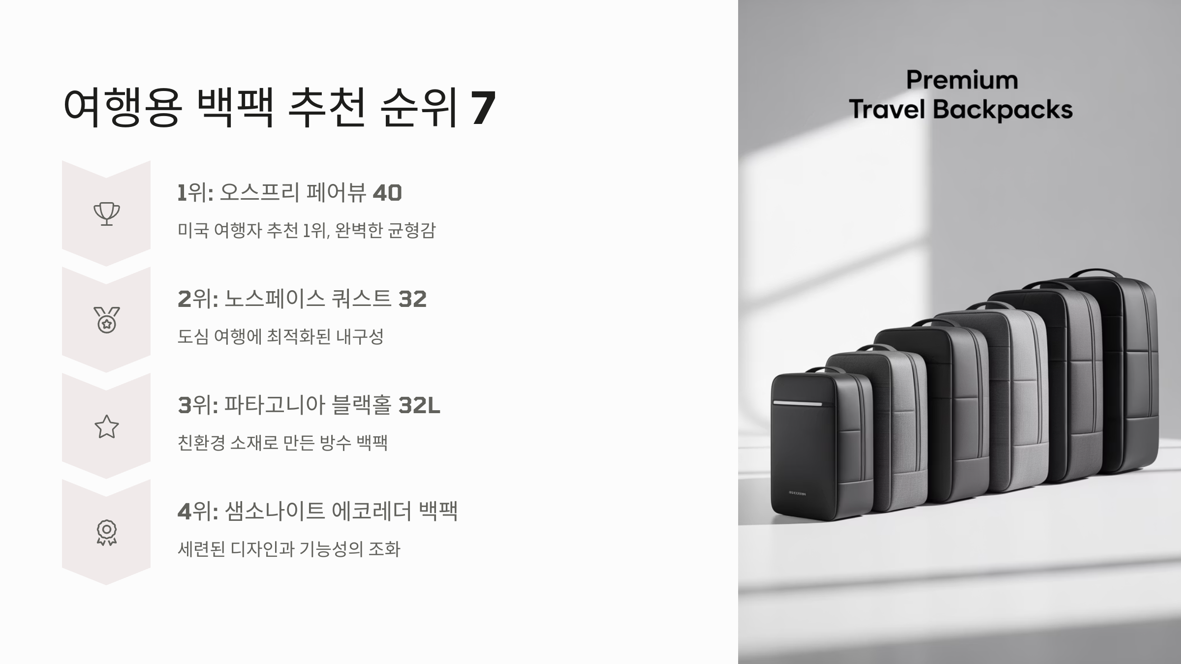 다음은 드디어! 2025년 여행용 백팩 추천 순위 TOP 7을 소개할 차례에요! 기대되죠? 🏆🎒