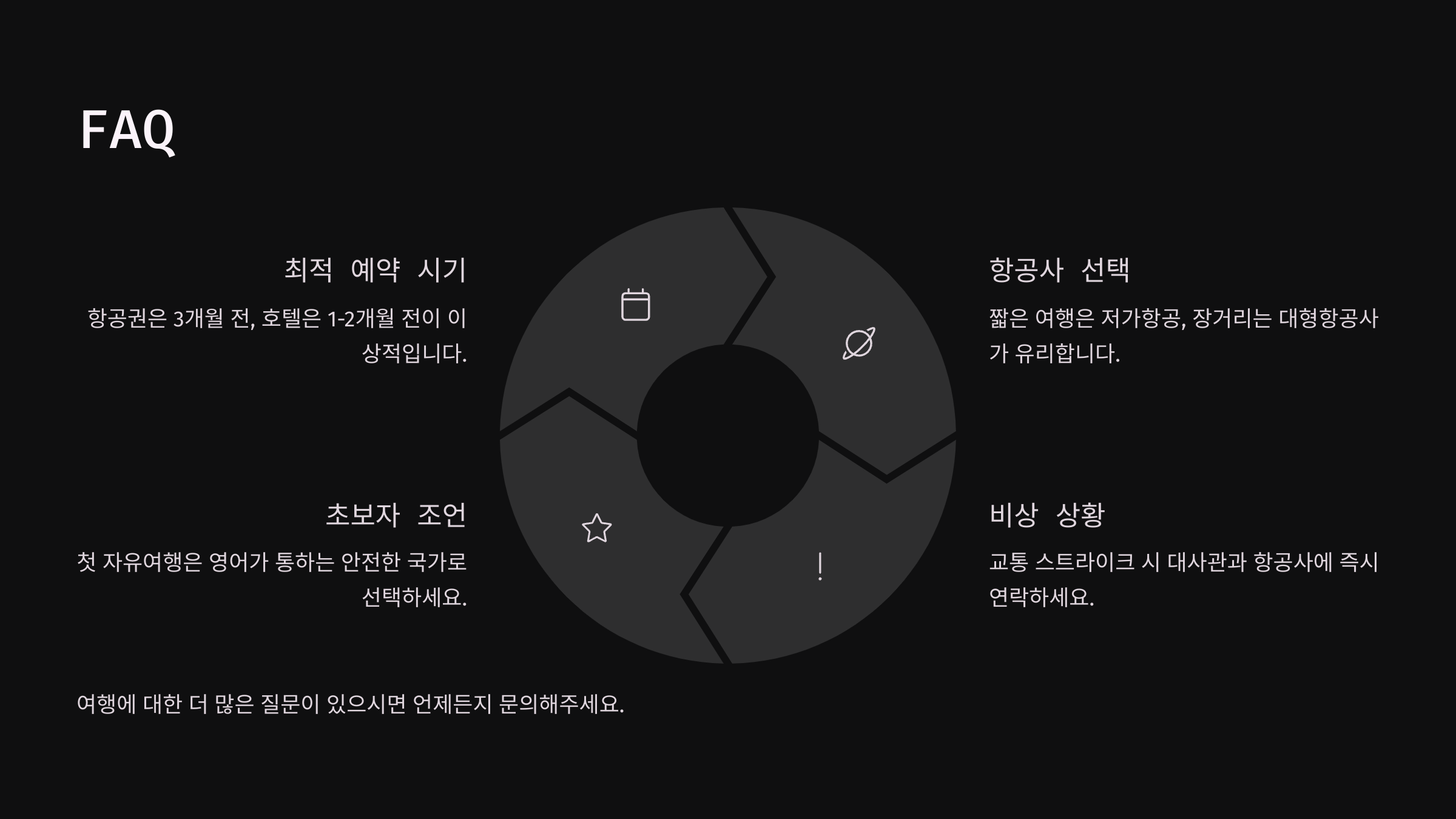 Q1. 교통편 예약은 언제 해야 가장 저렴한가요?A1. 항공권은 출발 2~3개월 전에 예약하는 것이 가장 저렴해요. 기차나 버스는 1~2개월 전에 예약하면 더 많은 할인 혜택을 받을 수 있어요.