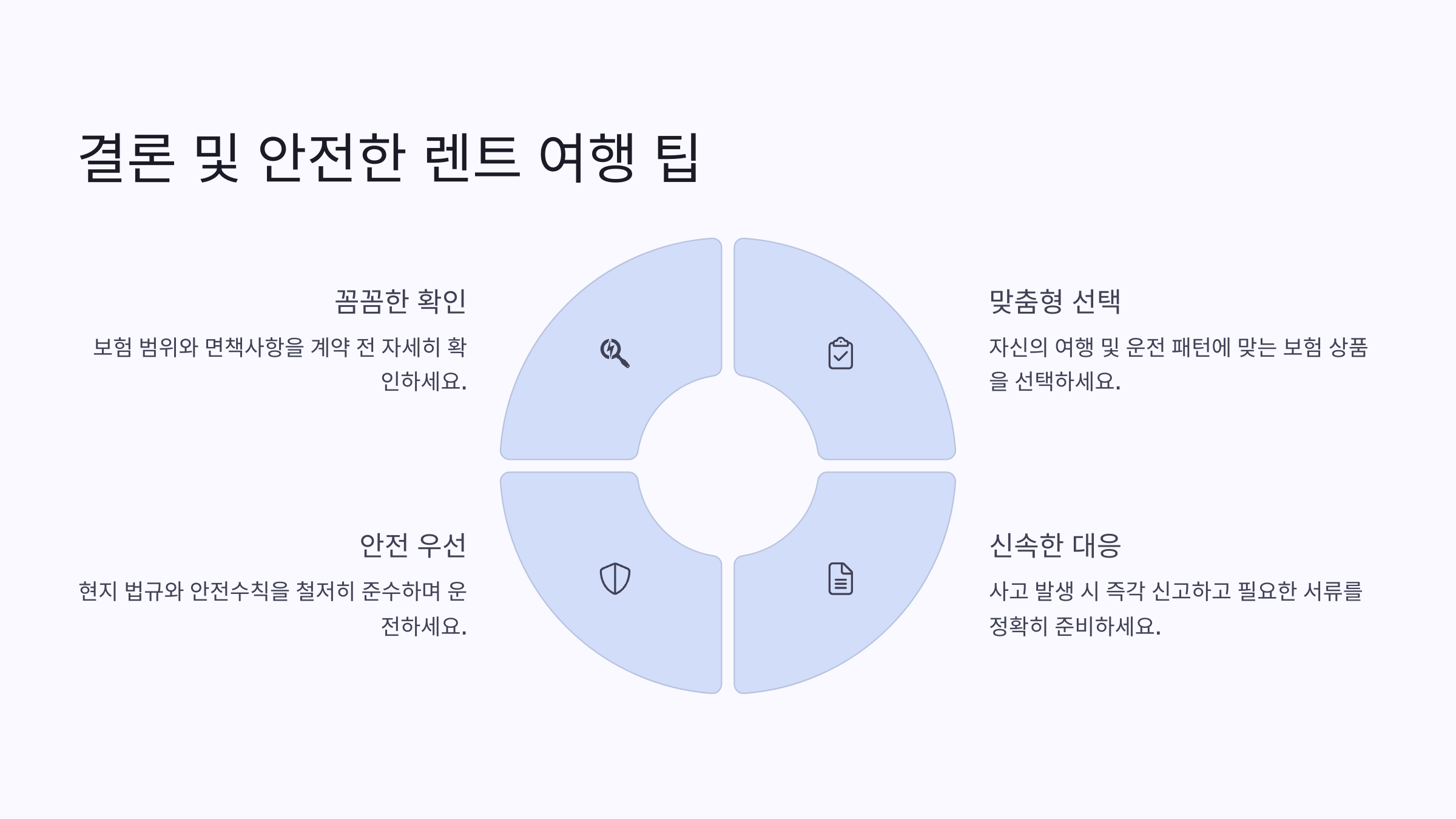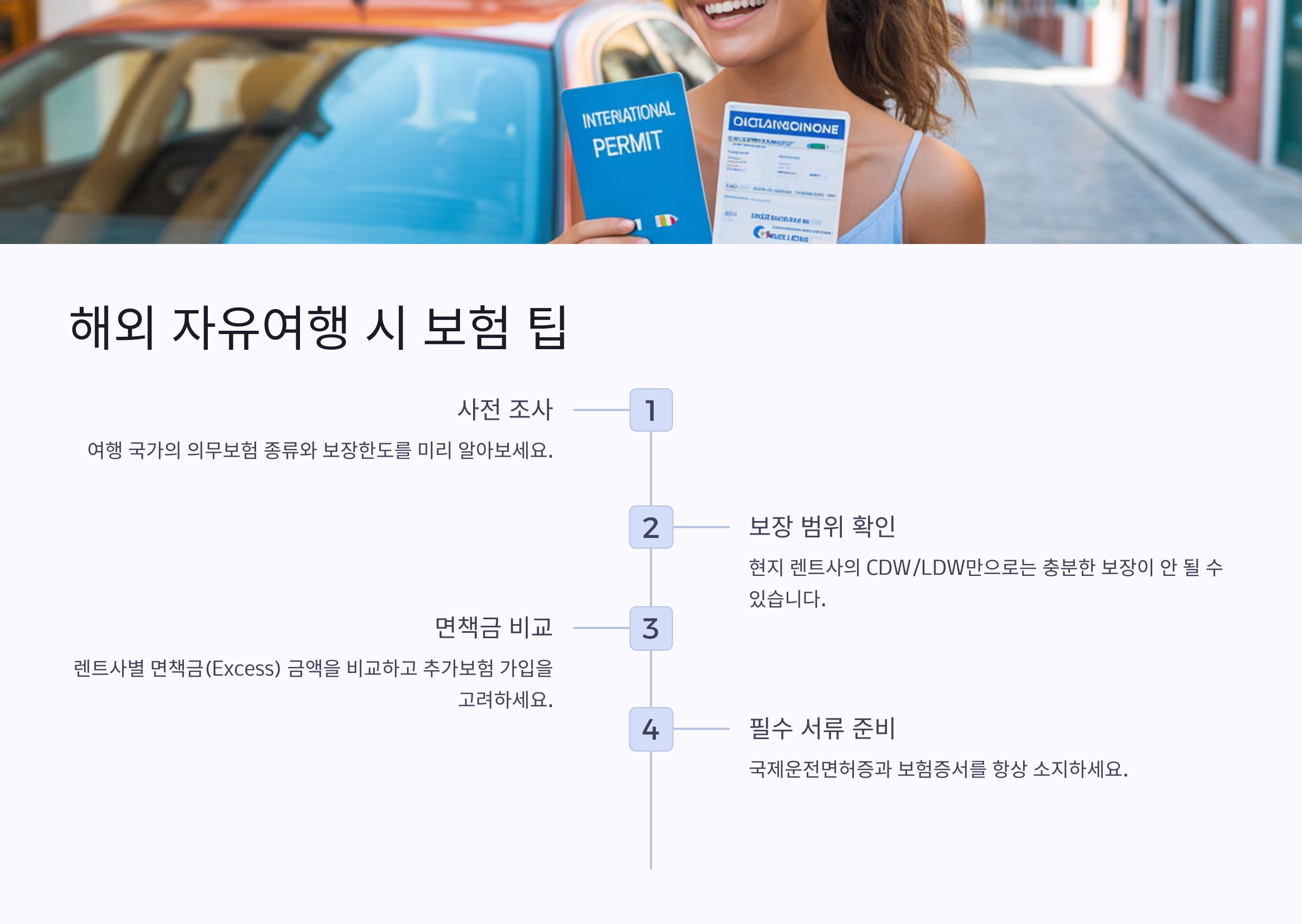 특히 해외에서 렌트카를 이용할 때는 각국의 보험 시스템과 보장 범위가 다르기 때문에 사전에 꼼꼼히 확인해야 해요. 보험 상품은 많지만, 어떤 것이 나에게 맞는지 정확히 아는 게 중요하거든요. '내가 생각했을 때' 이 부분이 많은 자유여행자들이 가장 헷갈려하는 지점 같아요.