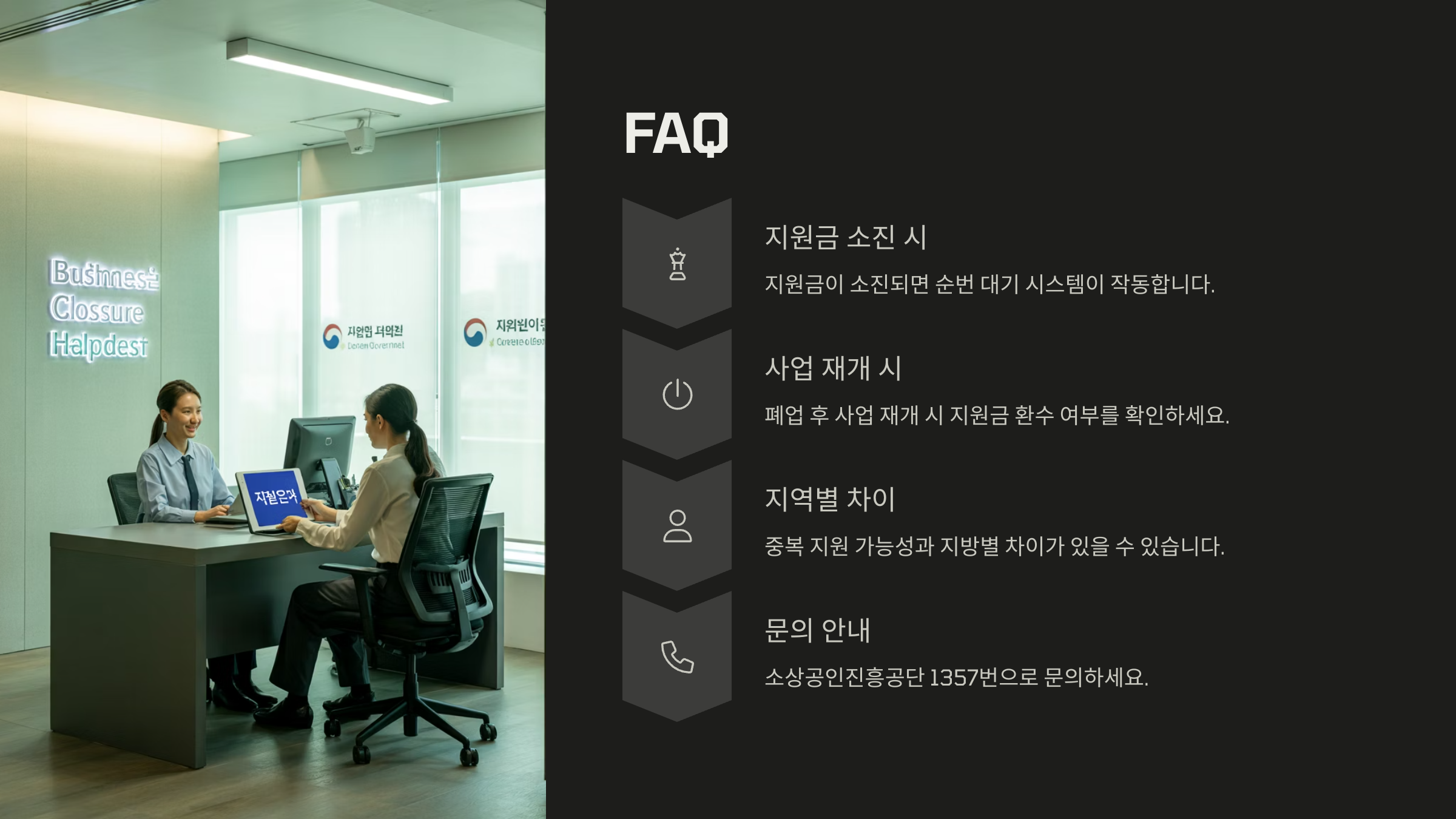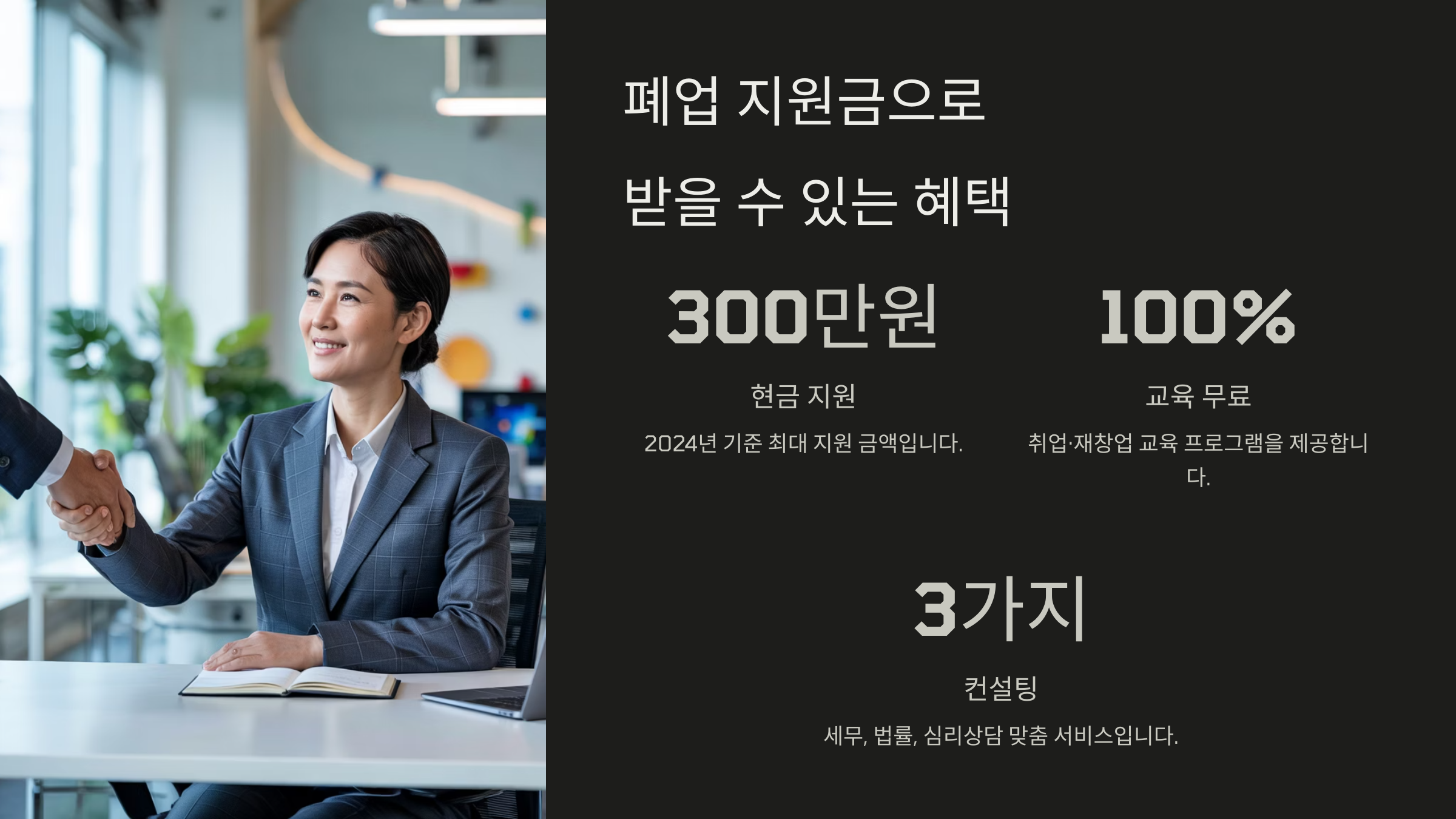 폐업 지원금은 단순히 돈을 주는 것이 아니라, 정리 과정에서 겪을 수 있는 다양한 문제를 해결하는 데 초점을 맞추고 있어요. 그래서 제도를 제대로 활용하면 훨씬 수월하게 마무리할 수 있어요!