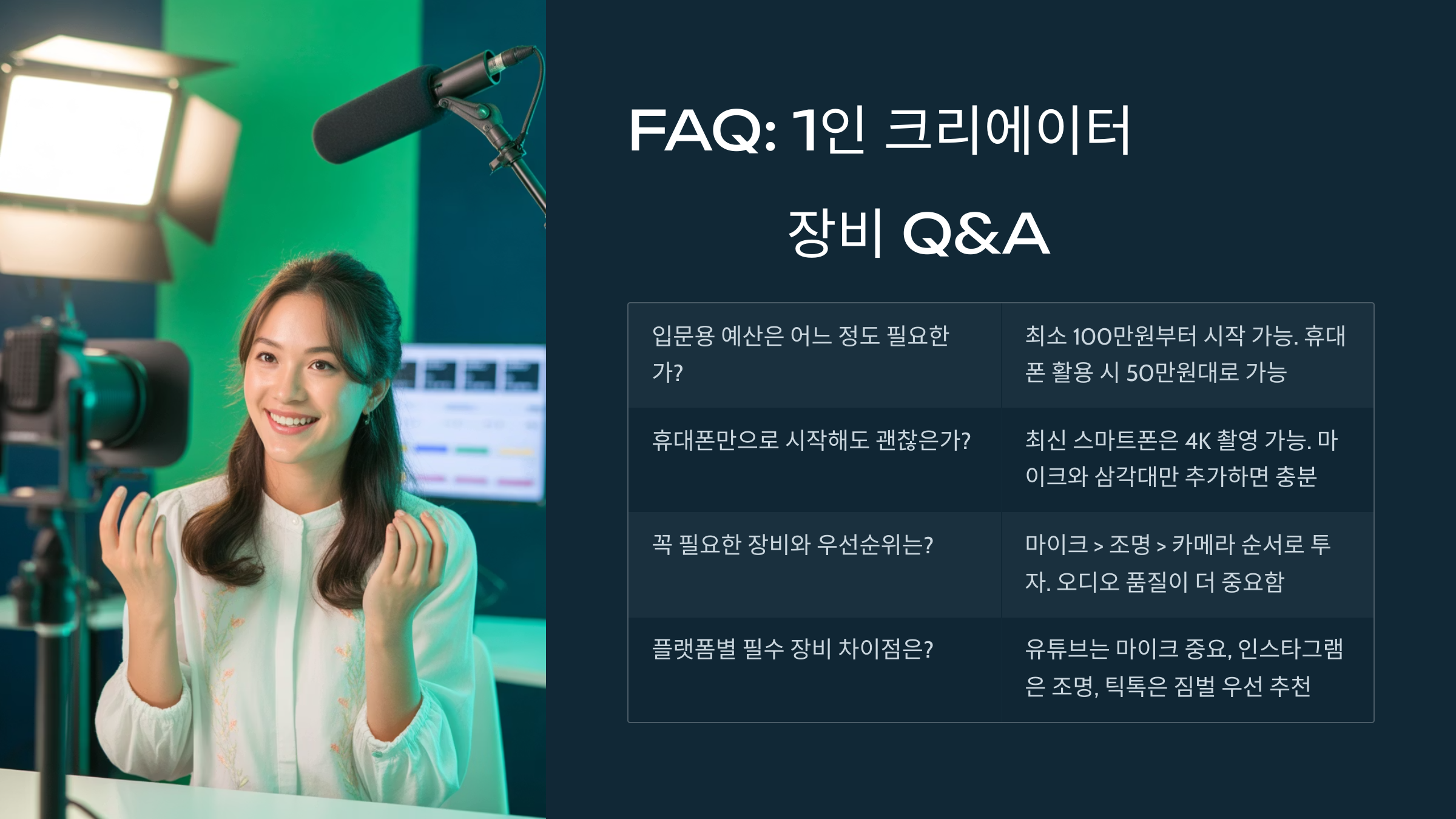 혼자서 모든 과정을 책임지기 때문에, 효율적이고 품질 높은 장비를 갖추는 게 정말 중요해요. 2025년 현재는 퀄리티가 생존을 결정짓는 시대예요. 📈